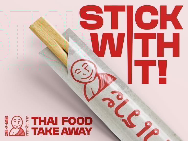This is a rebrand for a small Thai food take away restaurant with ambition to SMIL-E-MONK grow into a franchise that is a solid presence in the food business.